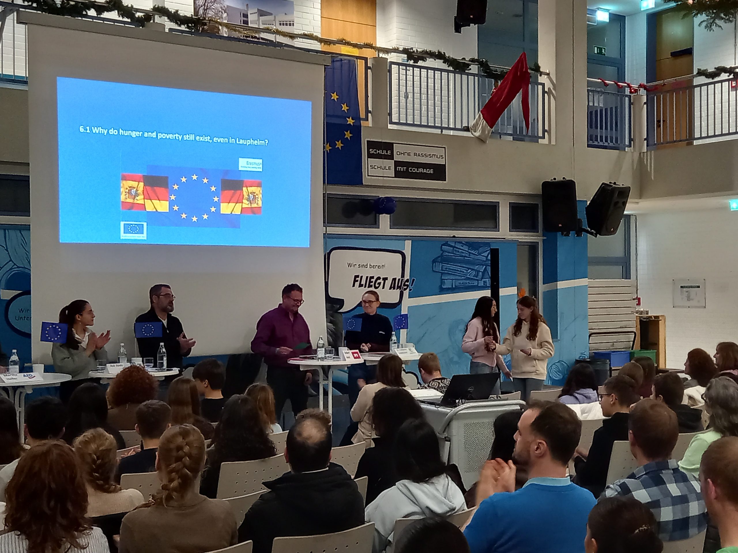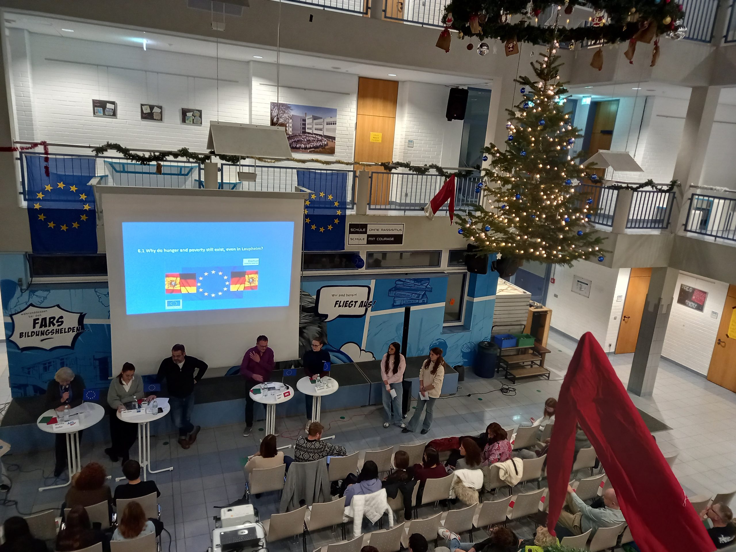 A special panel discussion in English took place in the Lichthof. Students from IES Calisto y Melibea in Salamanca (Spain) and FARS worked together on the UN Sustainable Development Goals.