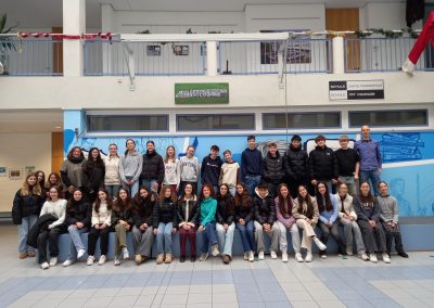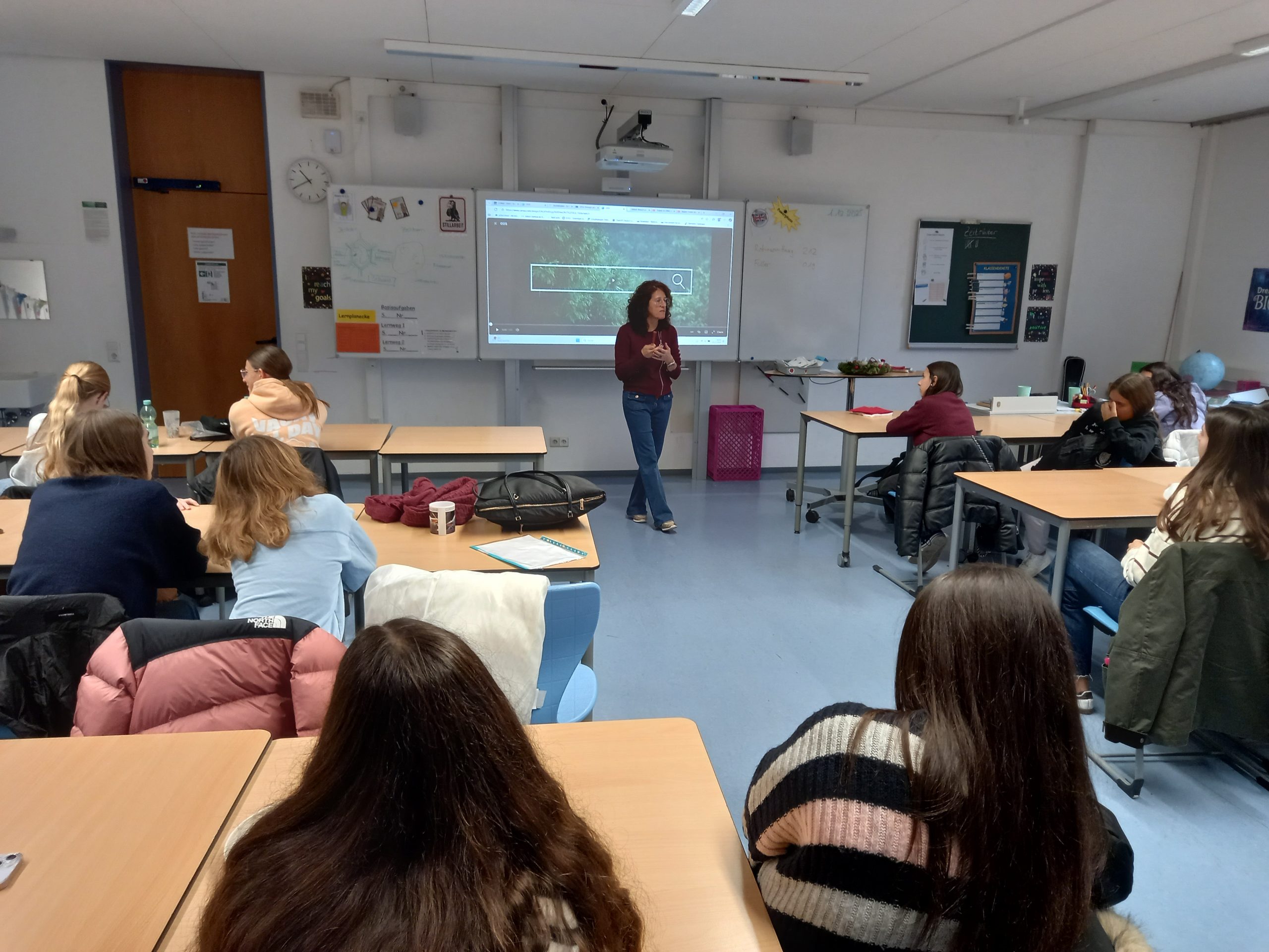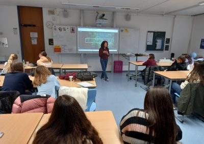 Im Lichthof fand eine besondere Podiumsdiskussion in englischer Sprache statt. Schülerinnen und Schüler der IES Calisto y Melibea in Salamanca (Spanien) und der FARS beschäftigten sich gemeinsam mit den UN-Nachhaltigkeitszielen.